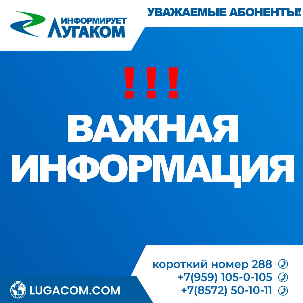 !!! УВАЖАЕМЫЕ АБОНЕНТЫ !!!